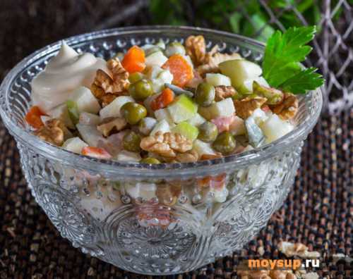 Завтраки. По желанию его можно натереть на терке с крупными ячейками. Выложим любой выбранный майонез, присолим и поперчим. Аккуратно перемешаем все нарезки. Если блюдо сразу же будет подано на стол, то в него можно добавить измельченную зелень. Выложим салат на блюдо и подадим к столу. Также салат создается и заранее, до прихода гостей его можно хранить в холодильнике не более суток. Комментировать , Смотрите ещё. Можно приготовить также. Салаты с кукурузой. Салат с утиным мясом и кукурузой. Салат с клубникой, колбасой, рукколой и сухариками. Салат с фасолью, сухариками и кукурузой. Салат с курицей, черносливом и сыром. Салат с копченой колбасой, горошком и кукурузой. Салат с крабовыми палочками, помидорами, сыром и яйцом. Ваш не будет опубликован. Как к вам обращаться. Морской с крабовыми палочками, яйцами и овощами. Салат с копченой колбасой, горошком и кукурузой. Салат с копченой колбасой, кукурузой и морковью покорейски. Салат с копченой курицей и сельдереем. Салат с копченой курицей, луком и фасолью , Гарниры.